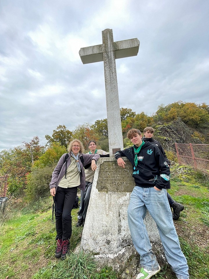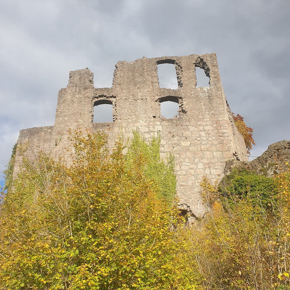 Wir wurden vom dortigen Pfarrbüro ganz toll und herzlich bei der Planung der Wanderungen und dem Aufenthalt unterstützt und konnten unser Quartier im katholischen Pfarrheim aufschlagen. Den ersten Tag ging es rund um Winnweiler zur Kreuzkapelle und Hochsteiner Kreuz. Am nächsten Tag war unser Ziel die Burgruine Falkenstein und wir kehrten mitten im Wald in der Kronbuchenhütte ein. Bei leckerem selbstgebackenem Kuchen gab es eine spontane Singrunde mit den Wirtsleuten, die mit Gitarre und Geige irische Volkslieder spielten. Ganz unverhofft und richtig schön. Zum Abschluss besuchten wir noch den Gottesdienst zum 50 jährigen Jubiläum der Grundsteinlegung der kleinen Kirche in Falkenstein.